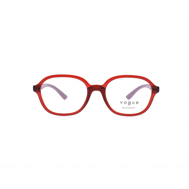 Παιδικό γυαλί οράσεως, VOGUE JUNIOR, με κοκκάλινο οβάλ σκελετό, σε διάφανο κόκκινο γυαλιστερό χρώμα, και μωβ λεπτομέρεια στην εσωτερική πλεύρα των βραχιόνων...